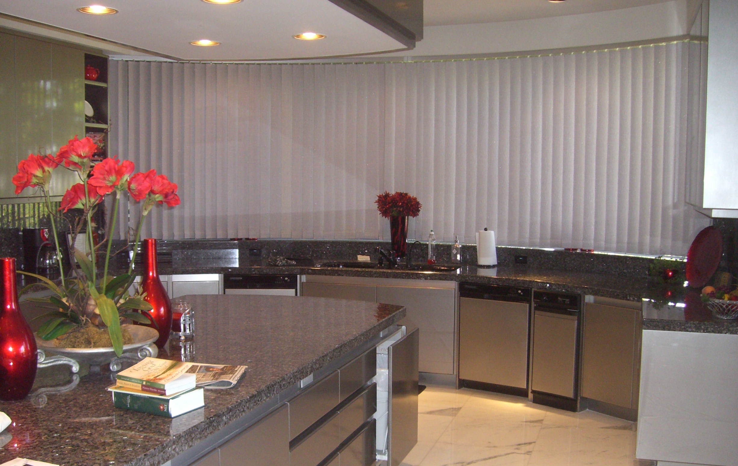 Commercial verticals are a cost effective way to cover large windows. Offices, restaurants, hospitality and apartments commonly use vertical blinds.