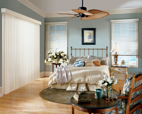 Crosswinds Vertical blinds offer superior light control and are well suited for sliders and large windows.