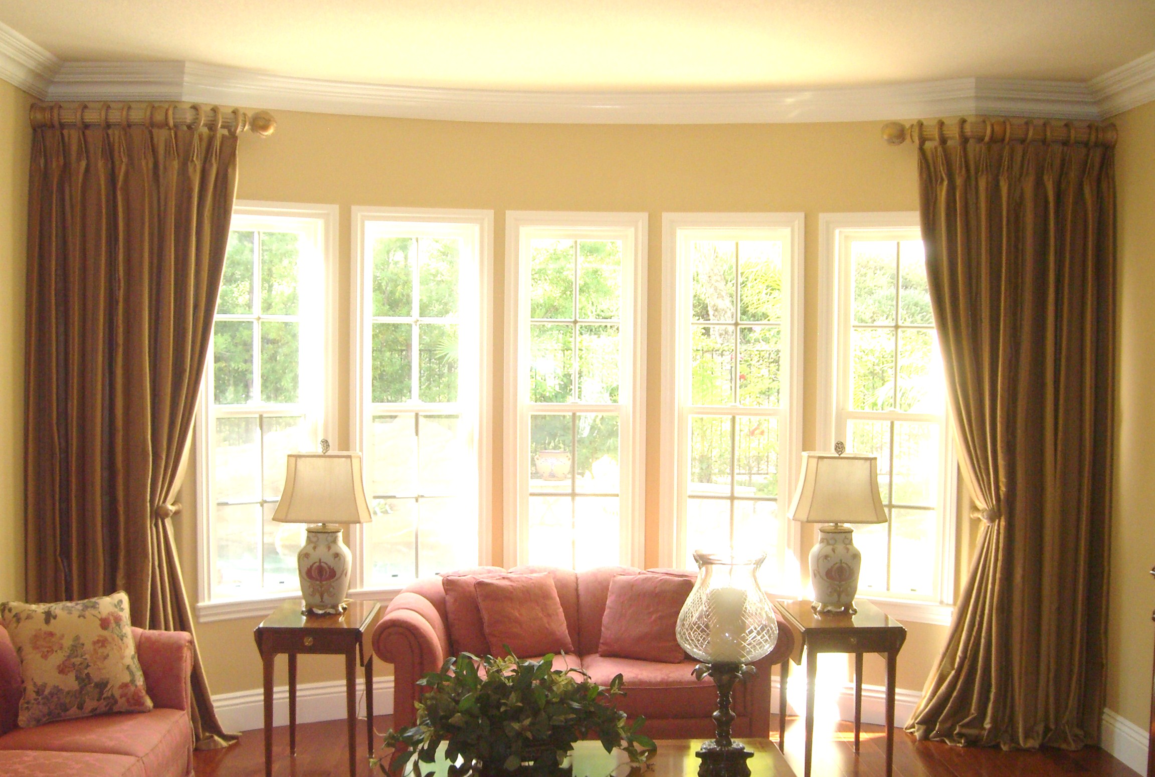 Custom quality drapes and valances add an elegant designers touch to any room. Silks, linens, velvets, sheers and prints in almost any style pattern or color can be made into custom draperies and valances. Having our own custom workroom, we appreciate the details that you put into your custom window covering designs.